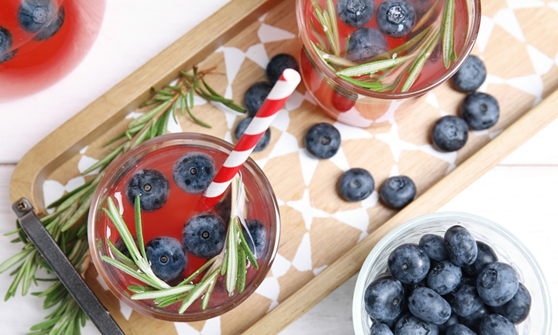 Muddle blueberries and rosemary with either stevia or xylitol using a wooden spoon or muddler in a cocktail shaker or glass.